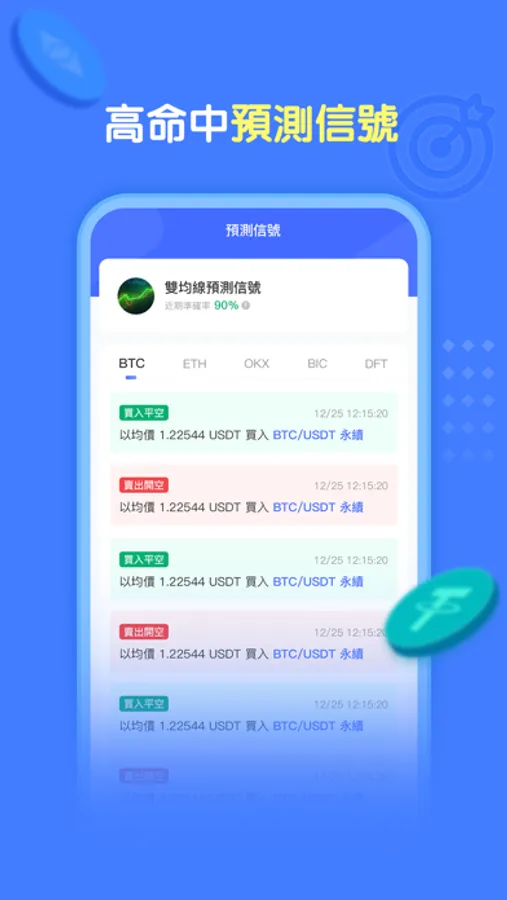 1. It provides a variety of personalized trading strategies, various arbitrage strategies, double moving average strategies, and Bolingbelt strategies. To adapt to different market conditions, Huadeng quantifies a variety of quantitative trading strategies in bull, bear, and volatile markets. The quantitative robot executes 7 * 24 hours without interruption. It supports hundreds of cryptocurrencies and 100+futures contracts, such as Bitcoin, Ethereum, Ripple Coin. Through scientific research and analysis, Make the quantitative benefits more reliable.