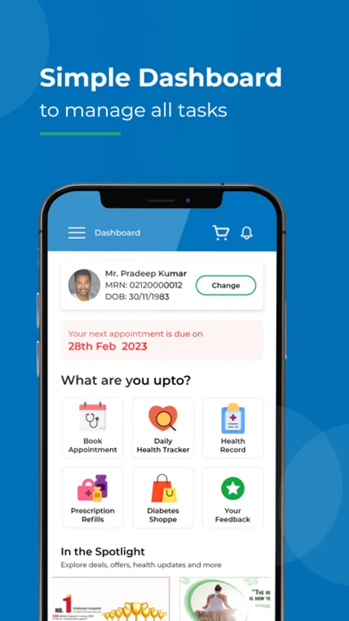 This app helps you to Book Appointment, Find the nearest Dr.Mohans Clinic, Refill your prescription, Diabetes Shoppe and View/ Download your recent health records