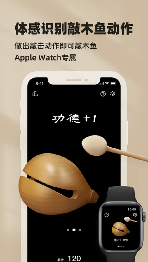 Watch vibration and sound feedback, giving you the most authentic wooden fish percussion experience.