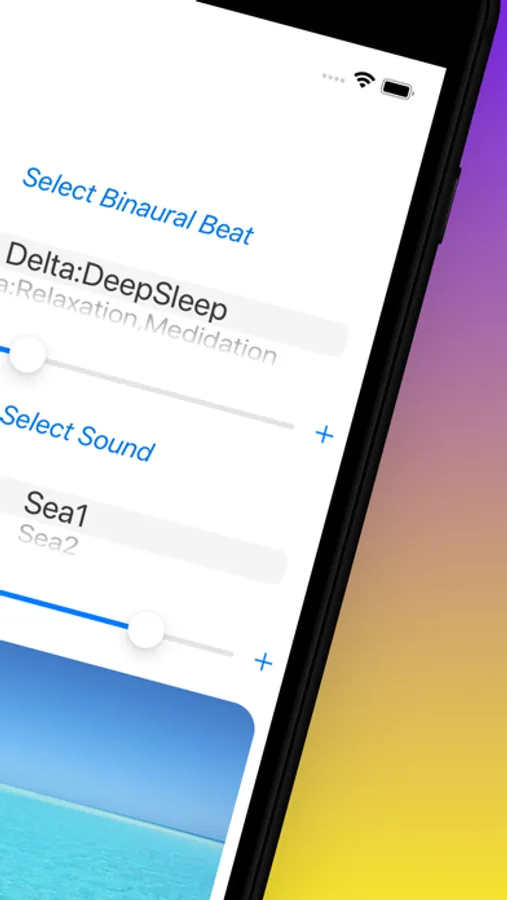 3. Adjust the volume of each sound with the slider under Binaural Beats and Sound (Binaural Beats is more effective at low volume).