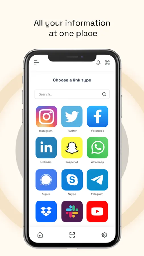 your contact info, social media, files, videos, and
