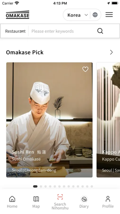 ㅇ 글로벌 오마카세: 일본, 홍콩, 타이페이, 싱가포르, 방콕, 하와이 등의 프리미엄 오마카세 레스토랑의 정보를 저장하고, 여행에서 경험하세요.