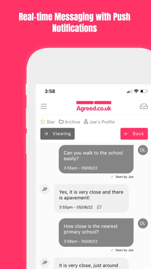 You can now chat in real-time and receive notifications directly on your mobile device. No need to head back to the web platform to confirm those viewing requests or reply to buyer questions.