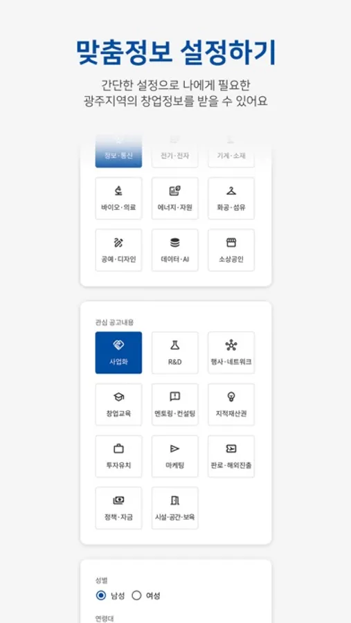 맞춤정보 설정을 통해 나에게 딱 맞는 지원사업만 확인할 수 있습니다