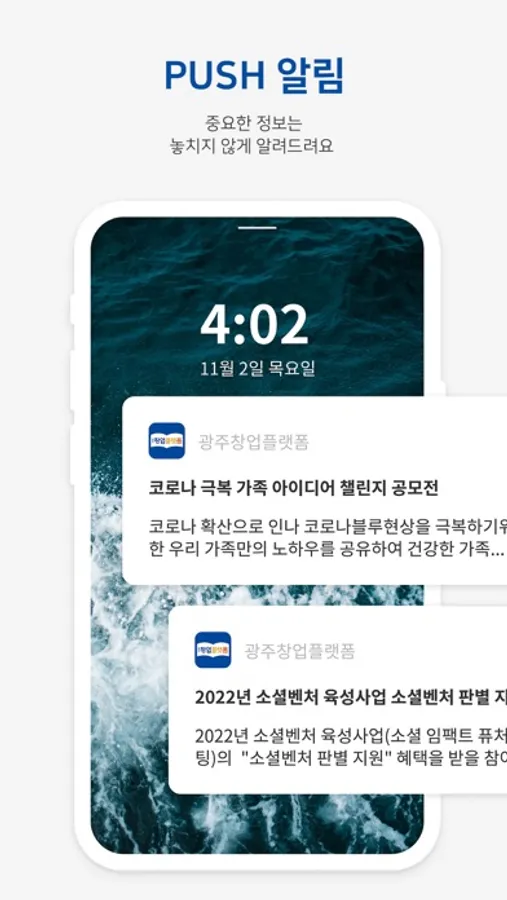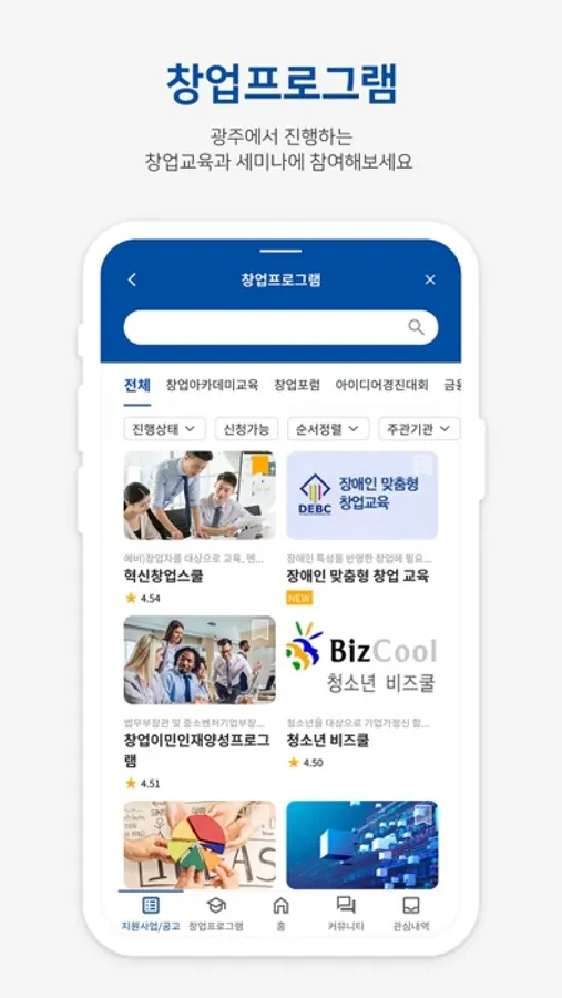 광주 지역의 공공기관 및 유관기관들의 지원사업과 공고를 모바일 서비스로 제공합니다.