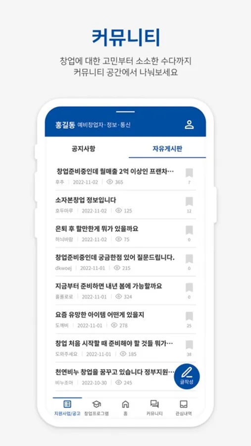 창업에 대한 고민부터 소소한 수다까지, 커뮤니티 공간에서 같이 나눠보세요