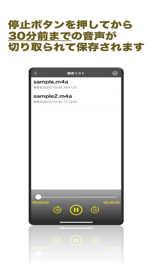 パワハラ・セクハラが発生してから、落ち着いて録音ボタンを押すと、それまでの30分間にあたる長さの録音データだけが保存されます。