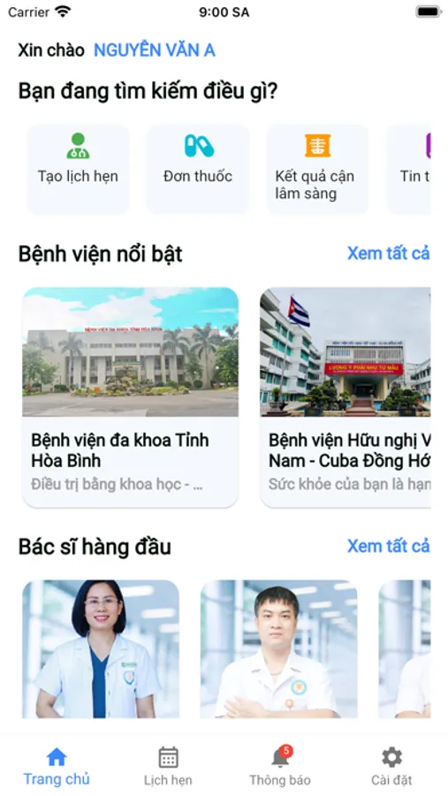 6. Nhận được thông báo kết quả cận lâm sàng khi có kết quả, thông tin đơn thuốc, chi phí khám chữa bệnh...khi kết thúc khám chữa bệnh.