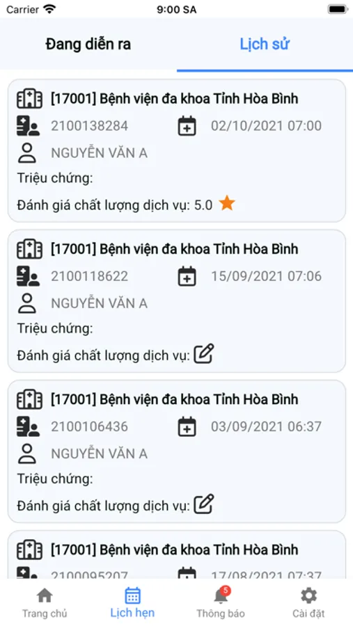 9. Đánh giá chất lượng dịch vụ của cơ sở khám chữa bệnh tương ứng theo từng lần khám, giúp cơ sở khám chữa bệnh ngày càng cải thiện chất lượng dịch vụ.