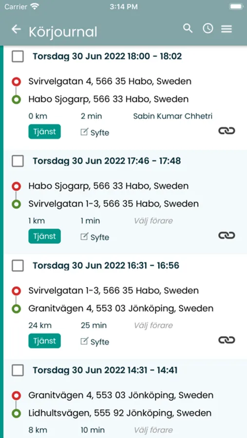 • Triplog: Automatic triplog approved by the Swedish Tax Agency