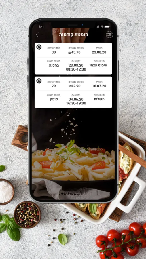 ניתן לבצע הזמנות ומשלוחים ישירות מהאפליקציה קייטרינג ומסעדה חלבית.