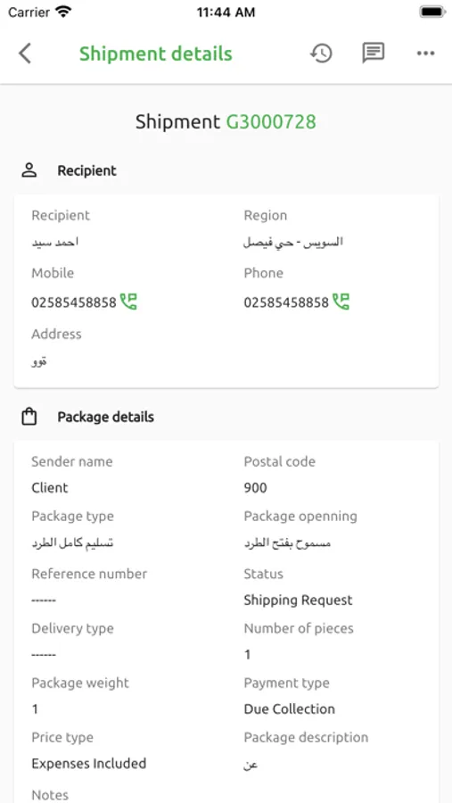 يسمح التطبيق لجميع العملاء في جميع أنحاء الجمهورية بإدارة تسليم واستلام الشحنات باستخدام الهاتف المحمول