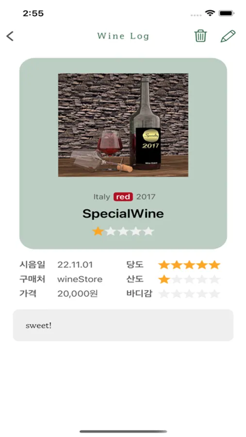 와인에 대한 나만의 평가도 남길 수 있어요.