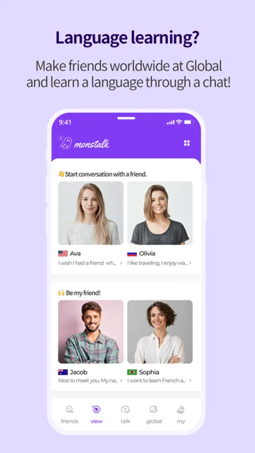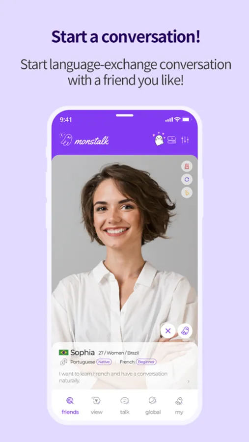 Monstalk provides easier access for you to have a conversation with worldwide friends, which encourages users to continue learning languages.