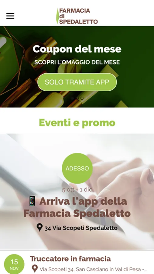 L'App della Farmacia Spedaletto ti permette di avere il tuo farmacista di fiducia sempre a portata di mano con consigli, informazioni, prenotazioni, ordini, richieste di prodotti e servizi in farmacia.