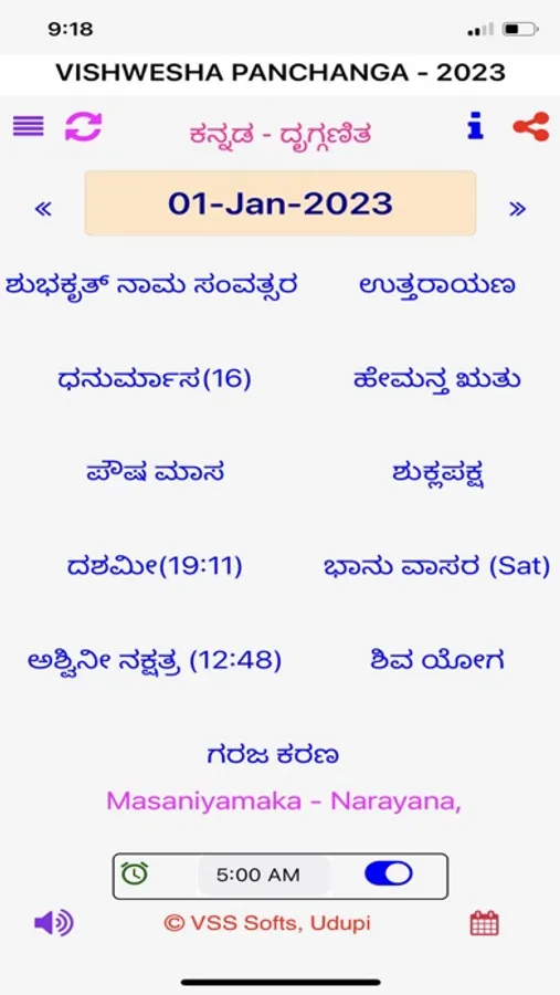 Thithi, Vara, Nakshatra, Yoga, Karana are known as Panchanga in Indian Astrology. Chanting of these Panchanga during daily rituals is being practiced. In this App for the year 2023, Panchanga detils are given in Six Language Scripts in both System - Drigganitha and Thithinirnaya