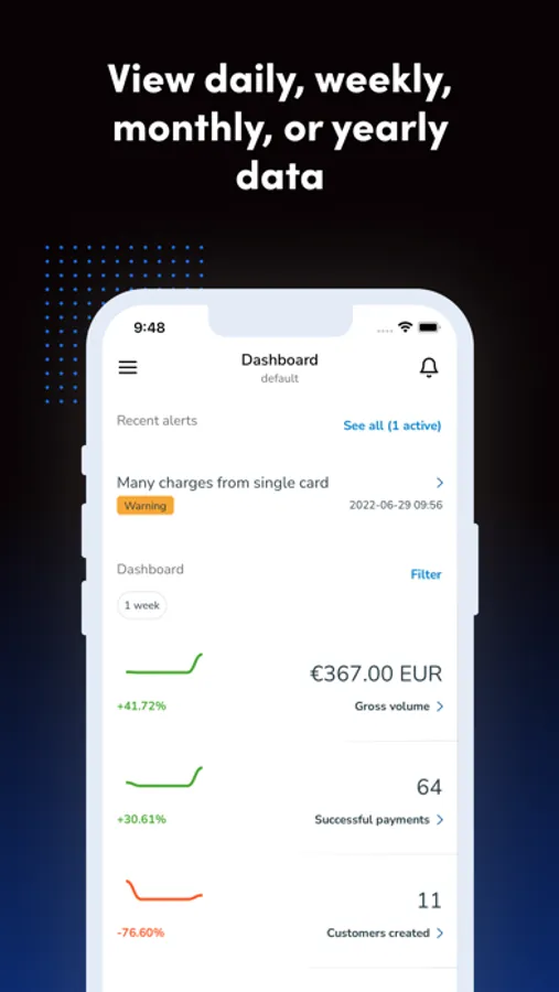 Get instant push notifications about charges, disputes, subscriptions, and other events on your account to stay up-to-date.