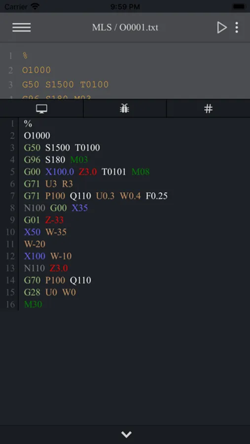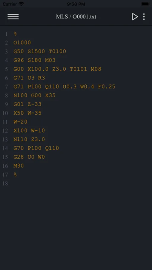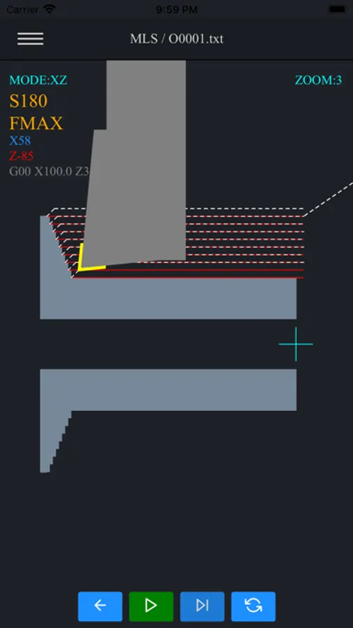Macro Lathe Simulator is an advanced CNC code editor and backplotter for G-Code (RS-274) and Fanuc Macro B programs for 2-axis lathe machines. This app comes with one of the best macro debuggers (shows all math and logical calculations while executing the program).