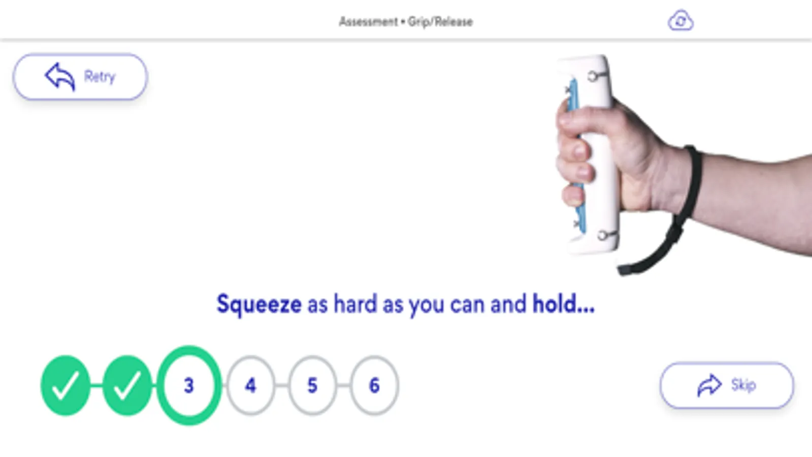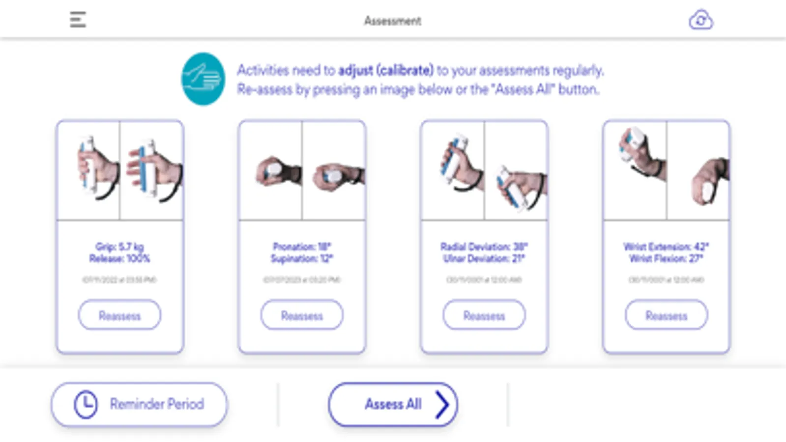 The GripAble device adapts to your own range of motions for the main hand functions using an in-app calibration tool.