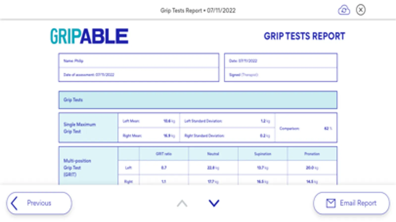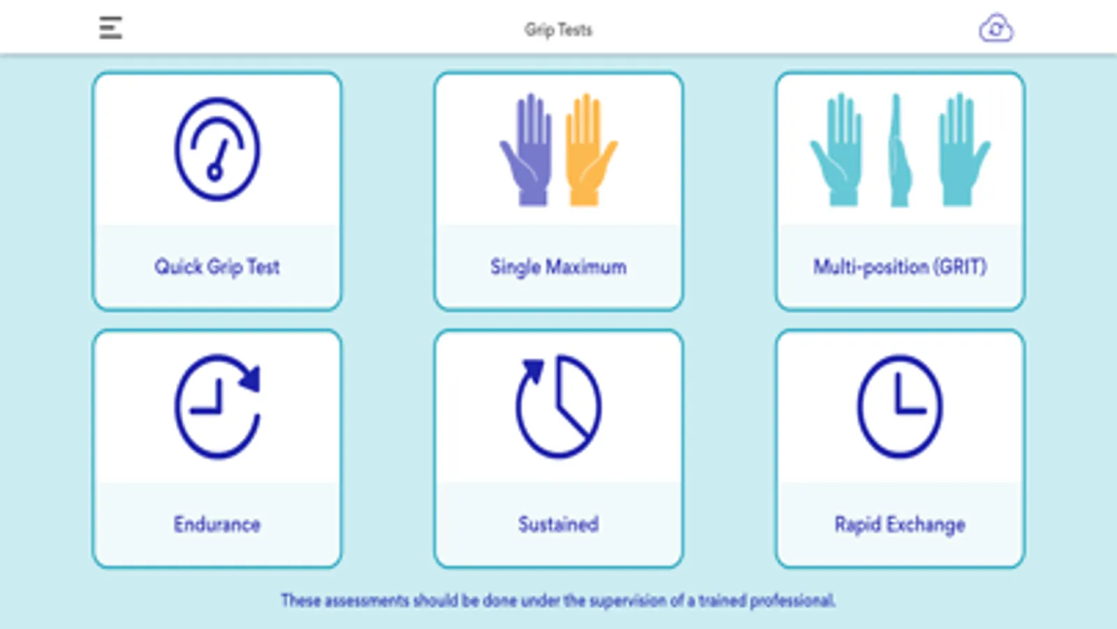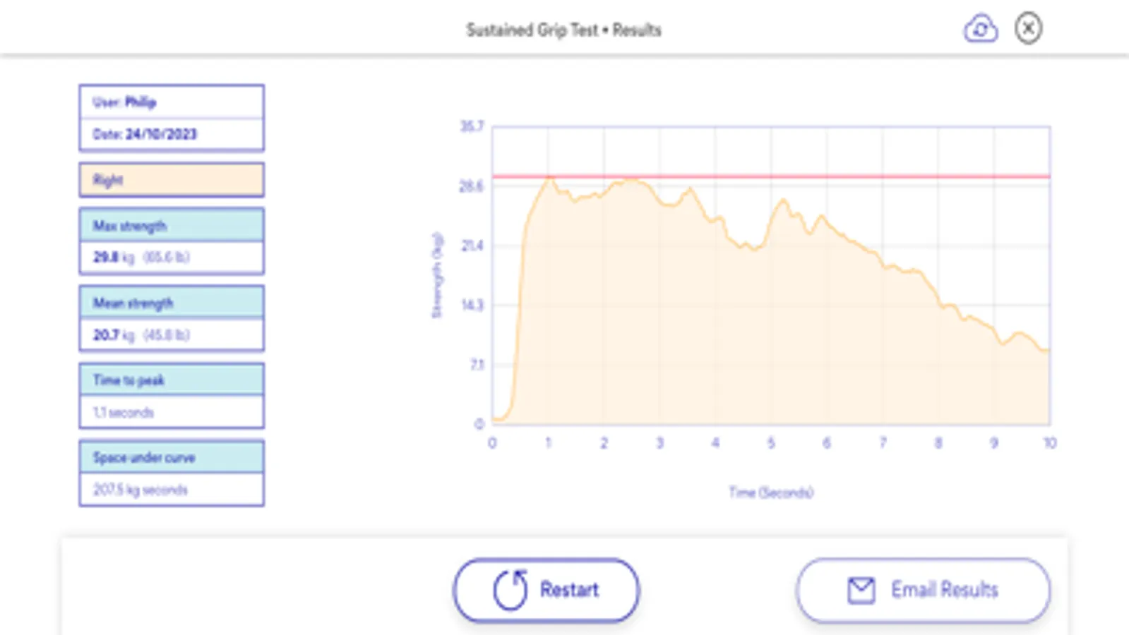 The app also comes with a variety of grip tests, used to assess and compare different aspects of your ongoing hand training.