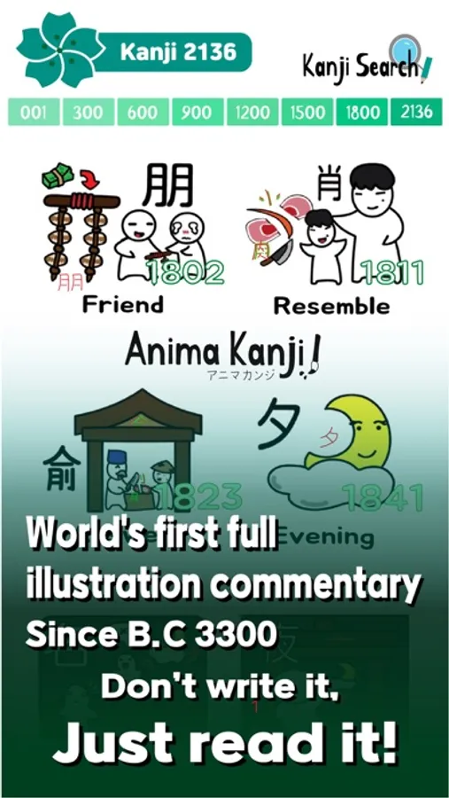 a. Since 3300 B.C, Anima Kanji is the first to explain all kanji characters in pictures and put them together in a unified system!