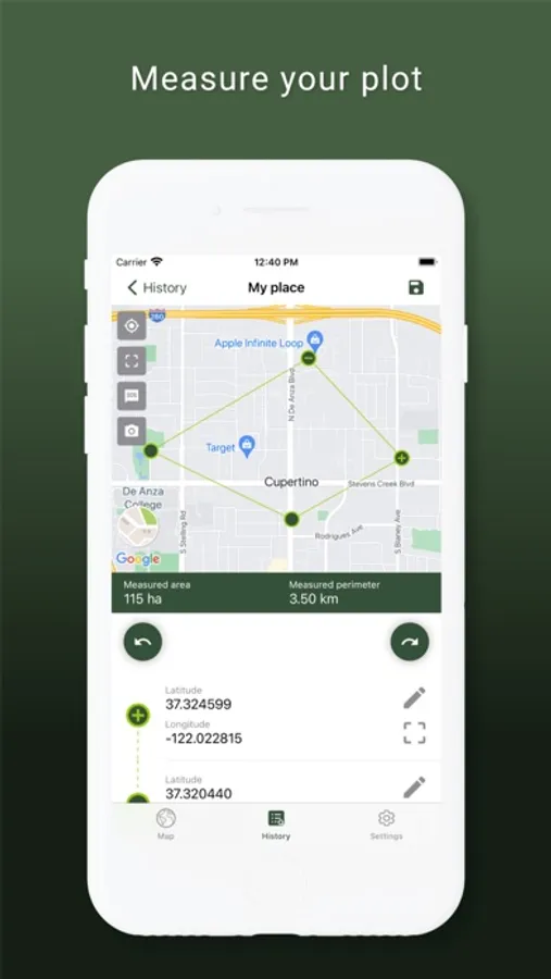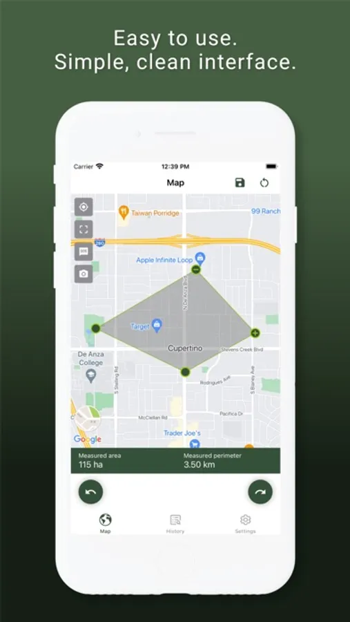 The other measuring option involves a little more planning. Sit on your comfy sofa, start our app, and in the custom map view, manually select the points/area to measure. This can come in handy if you want to measure your plot of land, or a physical area for future investment. On the other hand, if you are a farmer and you want to know the area of your planting fields, it's a great option for you as well. After taking the measurements, you can share them with your coworkers or friends.