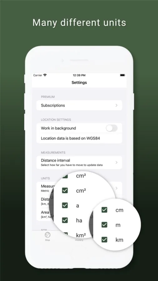 Our measurement algorithms are very accurate. They use both GPS positioning and a network connection to make your measurements even more accurate.