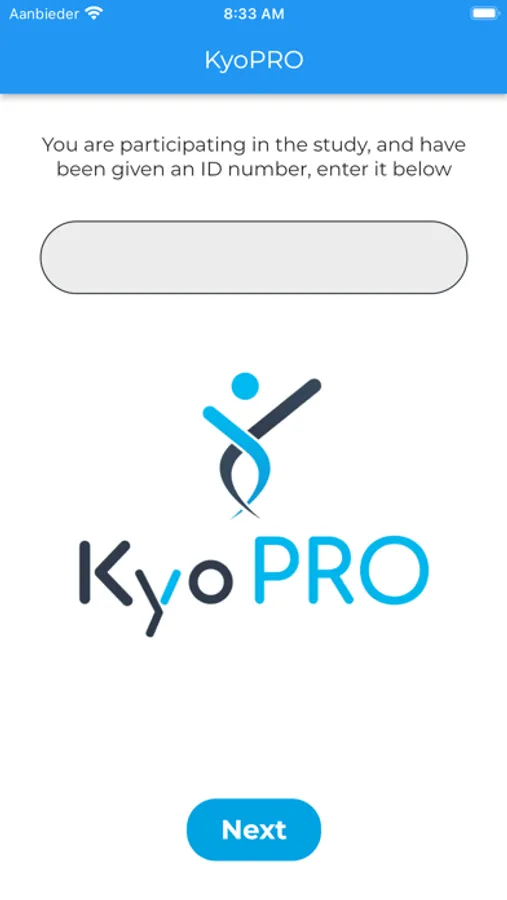 KyoPRO is an ePRO (electronic patient-reported outcome) application to be used in clinical trials. Only users with a study code can access the KyoPRO application. Please contact your clinical investigators for your study code. The user should be able to read and handle a mobile phone. It is recommended that a health care professional assists in software installation. The use of the application by minors is possible. For young children adults are instructed to supervise. To ensure working with the most recent version of the application, do not switch off automatic updates during use of the KyoPRO application.