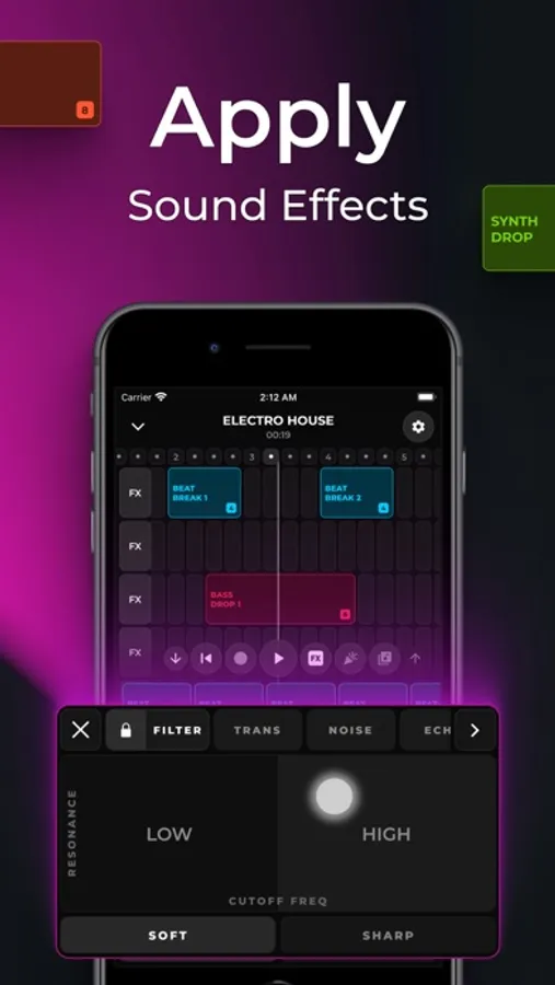 - Sound effects - Improve the sound of your music with sound effects.