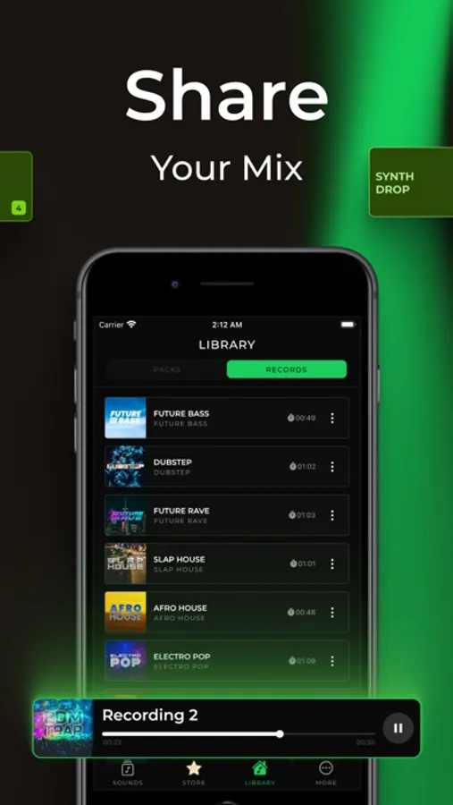 - Record - This feature allows you to record your songs in a way that real music producers do. Start it with a single tap before you start making the beats!