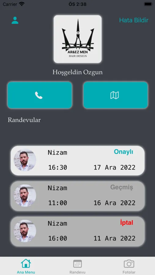 Uzun telefon görüşmelerine gerek kalmadan, randevu alabilmek için mesai saatlerinin gelmesini beklemeden tek tuşla randevu alabilirsin. Randevu saatinden önce sana bildirimler gönderilecek ve bu sayede hiç bir randevunu kaçırmayacaksın. Üstelik işlem sonrasında fotoğraflarını çekip uygulamaya yükleyebilirsin. Bu fotoğrafları sadece sen görebileceksin ve her seferinde farklı saç kesimi ile karşılaşmaktan seni kurtarıyor olacağız. Ek olarak yol yardımı alabilecek ve tek tuşla kuaförünü arayabileceksin.