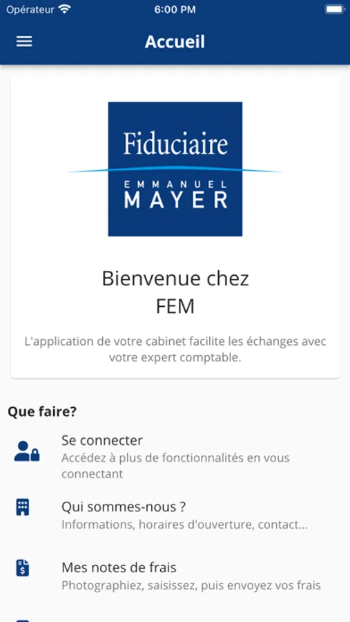 Because the world is changing, we offer you a handy application for managing your online account 7days/7 and 24h/24. This ease of use allows you anytime access to your documents, consult the news of the firm, or to gain visibility on various activities related to your record. We wish you a nice navigation!