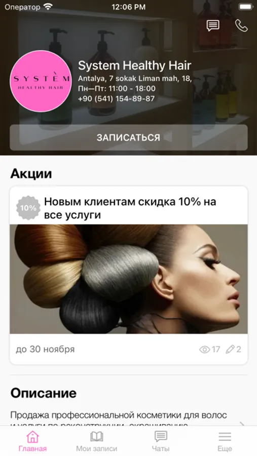 Бутик-студия эстетики волос в Анталии. Реконструкция, сложные окрашивания, биозавивка, биовыпрямление и продажа профессиональных домашних уходов.