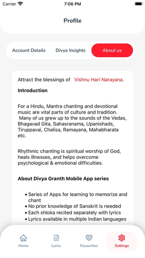 Mobile app developed specially to learn correct pronunciation and memorise the Divya Granth – Vishnu Sahasranama.