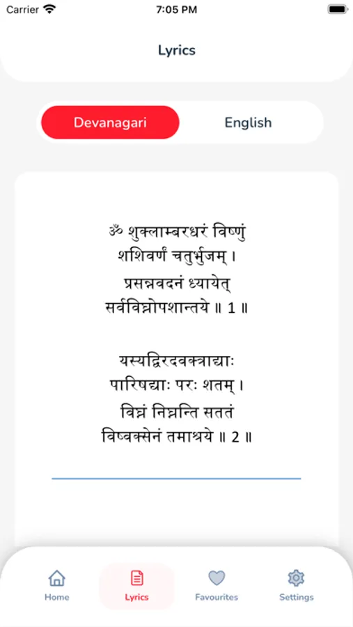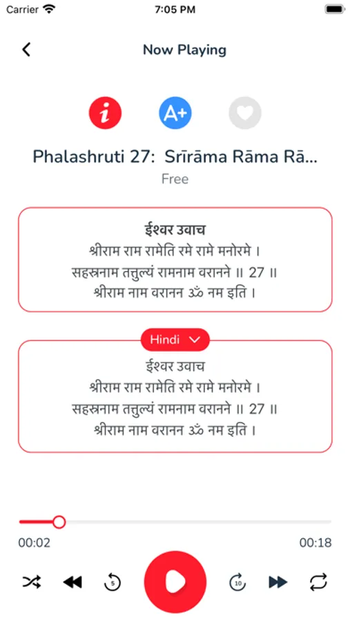 The app also helps you to learn all the other parts too – Anga Nyasa, Kara Nyasa, Dhyana, Poorva Peethika and Phalashruti.