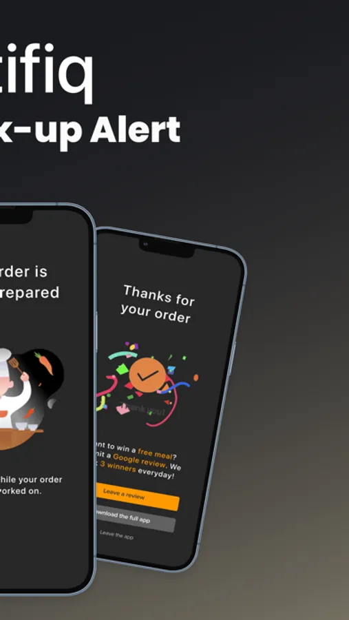 Download notifiq now, sit and relax and get notified when your order is ready!
