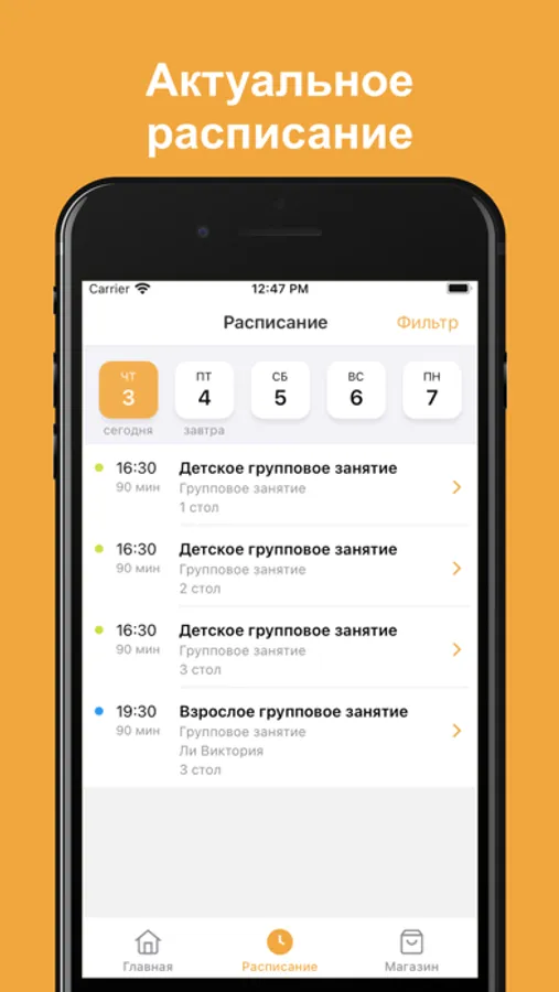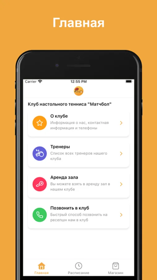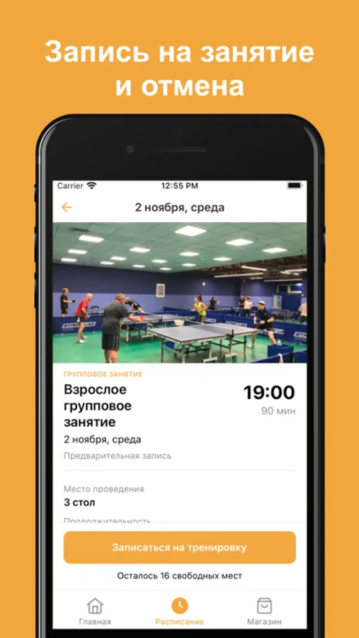 - Записаться на групповые, персональные тренировки, а также на аренду стола