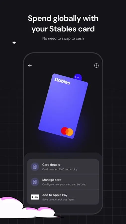 - Stablecoin-Powered Card - With a card connected to your Stables digital wallet you can seamlessly spend your money wherever Mastercard is accepted.