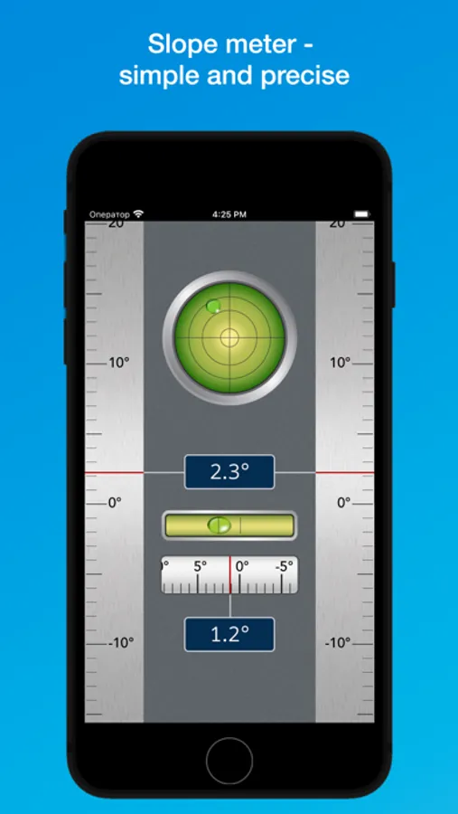 With this application you can easily measure the angle of inclination (slope) or set the plane exactly horizontally. The measurement accuracy is quite sufficient for domestic purposes. The screen shows the slope angle in both longitudinal and transverse directions. Measurements can also be taken in hard-to-reach places where you cannot see the screen. In this case, simply touch the screen and the reading will be frozen ("frozen"). Tapping again will resume the measurement process. This app can be used by physics teachers and students during physics labs to measure the angle of an inclined plane.