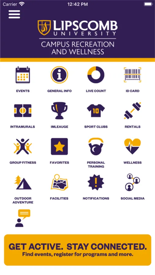 The Lipscomb Community's one stop shop for all things Campus Recreation & Wellness. Highlights of the app are: Group Fitness Schedule and Online Sign Ups, Intramural and Club Sport pages, and Outdoor Adventure resources. Another great tool on the app is the Digital ID barcode! Now you never have to worry about forgetting your physical ID; just log into your account and scan the barcode to get access to our facility! Push notifications will be used to communicate widespread information and closures, so make sure you have the app to get all the information you need in real time!