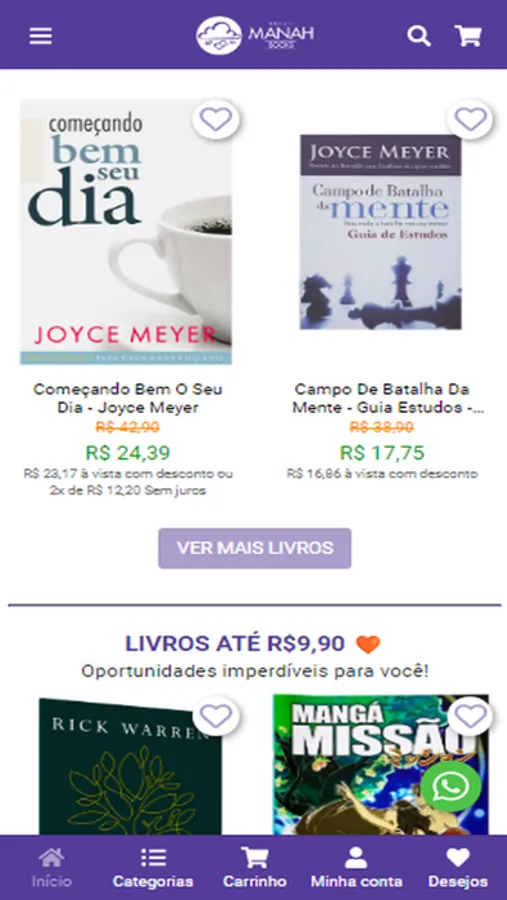 Livraria Manah Books, uma livraria cristã nascida em 2001 com sua loja física e a 4 anos com sua loja online, estamos localizados no interior de São Paulo na cidade de Marília-SP. Hoje trabalhamos com mais de 30 editoras e mais de 5.000 opções entre Bíblias e Livros cristãos em nosso site www.manahbooks.com.br