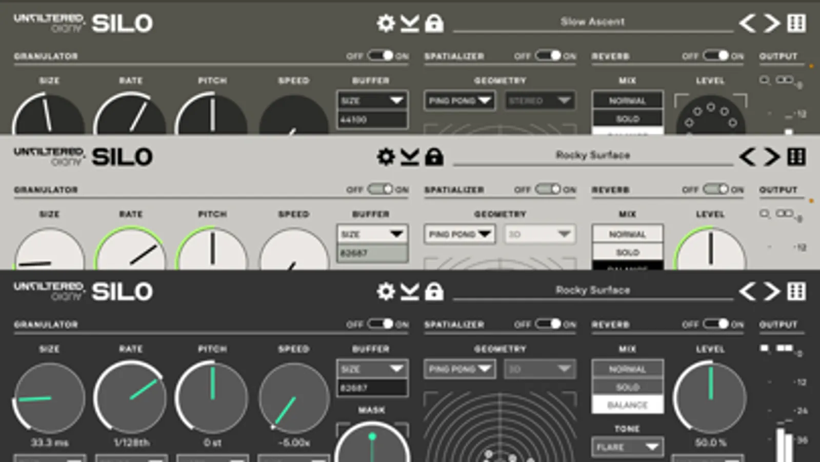 Silo combines granular synthesis, audio spatialization, and reverb into a powerful, essential tool for sound designers and musicians everywhere. Silo combines microscopic granulation with macroscopic reverb tails to extract new realms from your existing sounds.