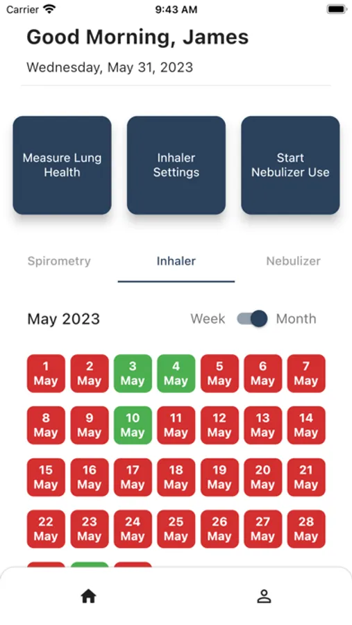 - App collects user recorded usage when an inhaler is recorded and is displayed to the user