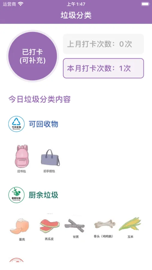 建设文明社会靠你、靠我、靠大家,垃圾分类是现代社会最新的时尚,也是环境保护,资源循环利用等的有效手段。垃圾分类助手可以每天通过打卡的方式记录自己当天所扔的垃圾种类以及大的分类,通过该应用,我们再也不用被保洁阿姨怒斥"侬是啥垃圾"啦!