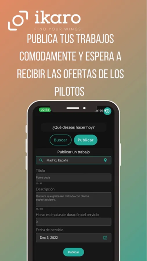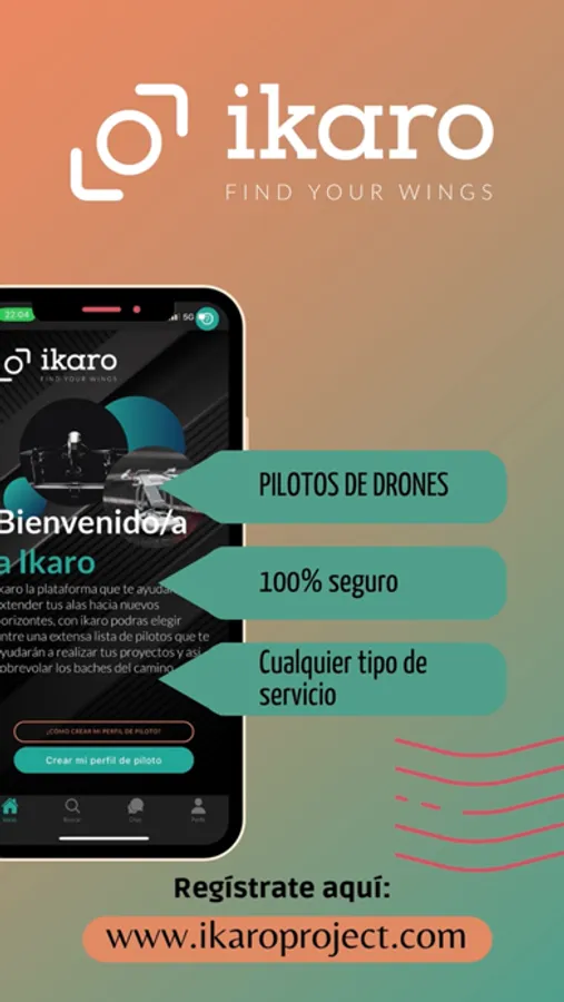 Ikaro the platform that connects clients with drone pilots, with ikaro you can choose from an extensive list of pilots that will help you carry out your projects, if you are a pilot you will gain visibility and you will be able to provide your services.