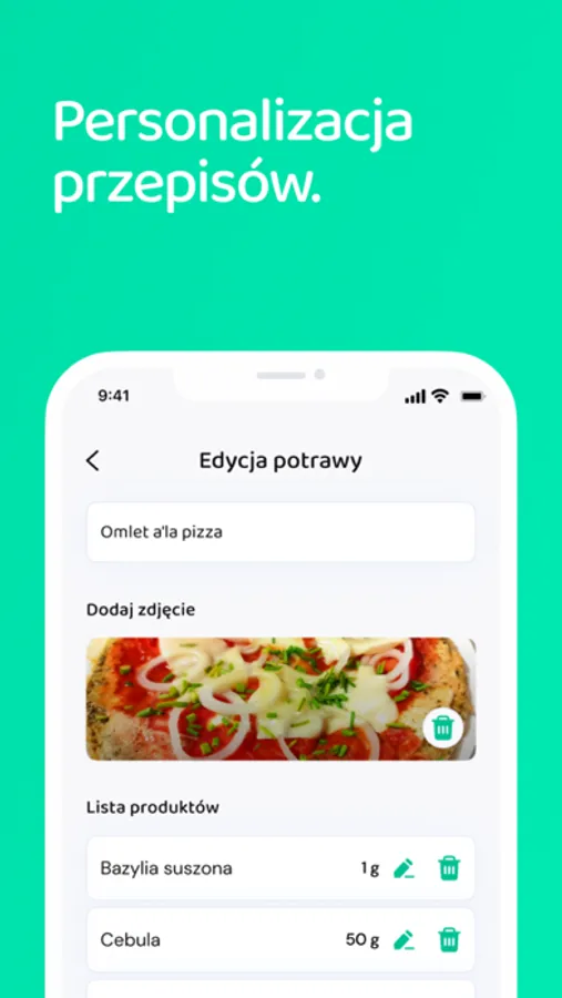 - Zapisywanie potraw własnych wraz ze zdjęciem i opisem przygotowania