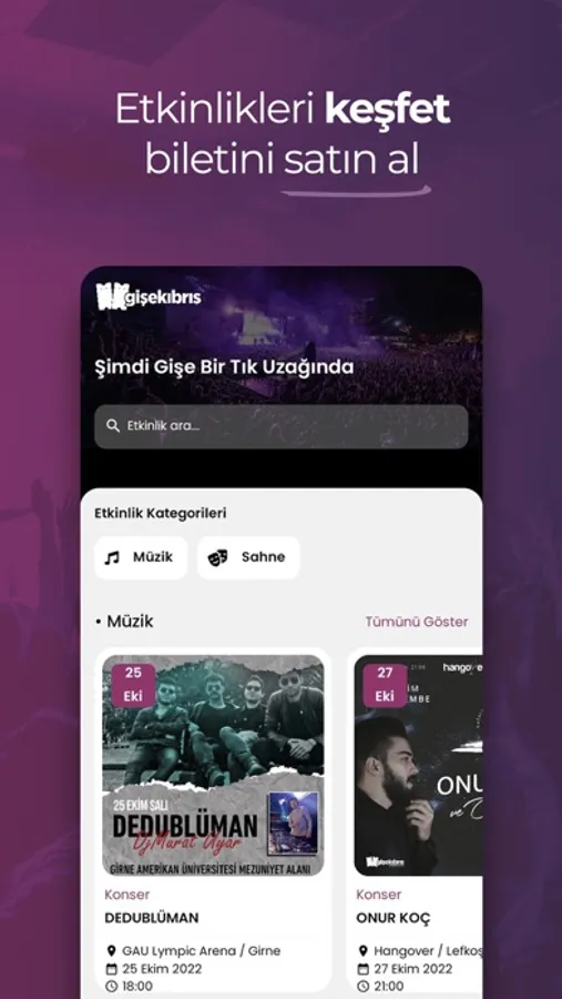 Entertainment and entertainment lovers come together with GiseKibris which is the only event ticket sales and event management service.