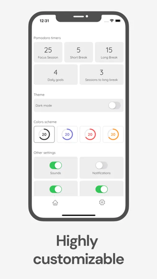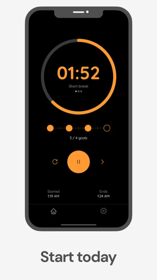 The application is clean and inspired by minimalistic design. You can hide all items from the home screen and show only the timer. No mess.