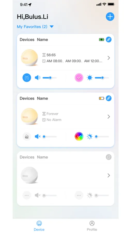 Connect devices to control, interact, sound, color, alarm clock and other functions