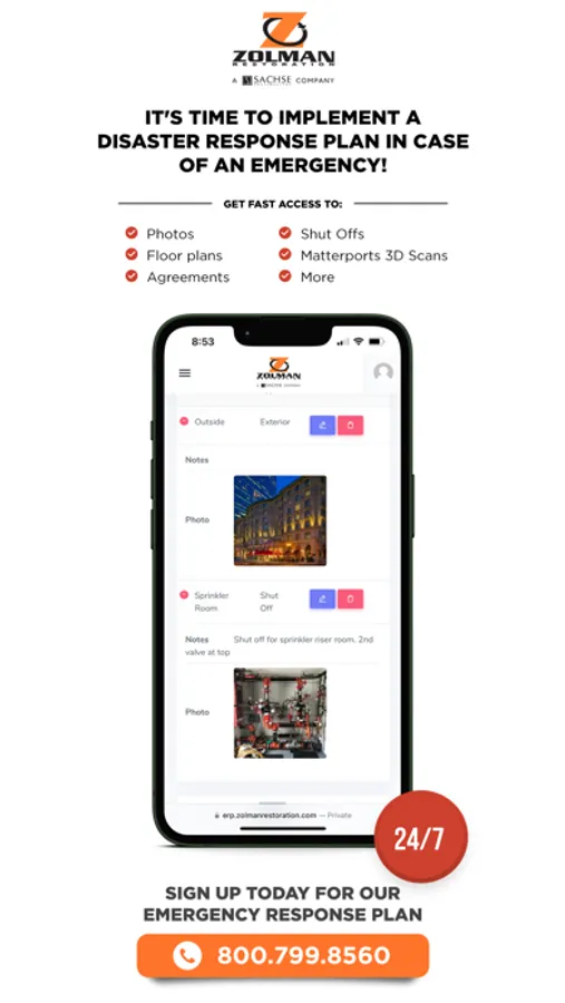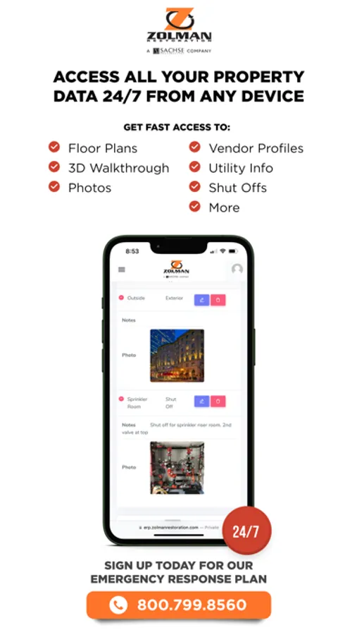 Are you prepared for the next disaster at your property? Whether it is a pipe break, sprinkler head, flood, or natural hazard - we can help you be prepared to help minimize damage, cost, and downtime. All your property data is right at your fingertips 24/7.